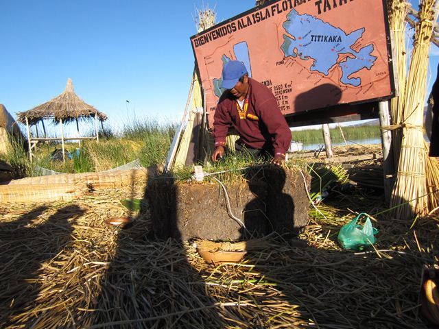 チチカカ湖上に浮かぶ葦(トトラ)で作った島、